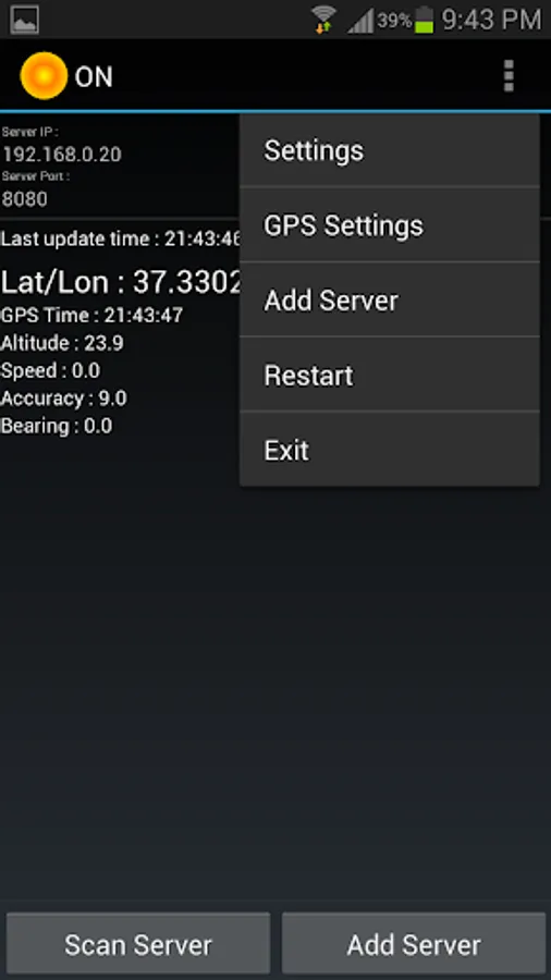 - For Server, ensure the GPS is enabled. It is under Settings (see screen shot)