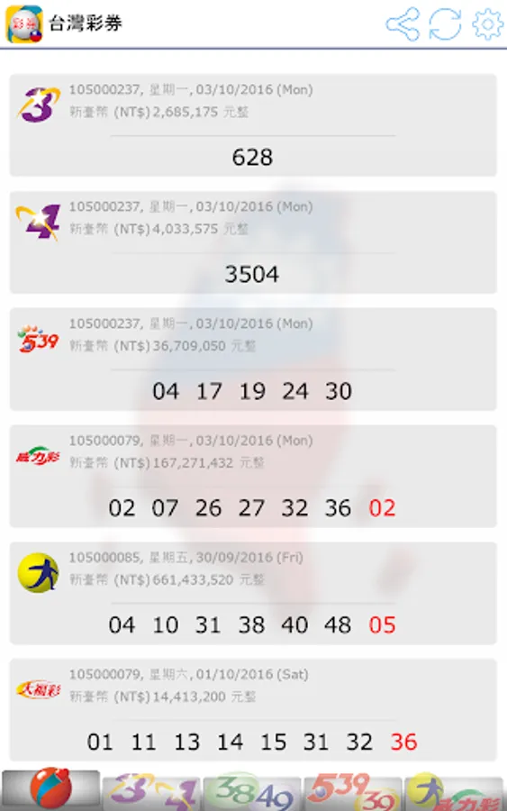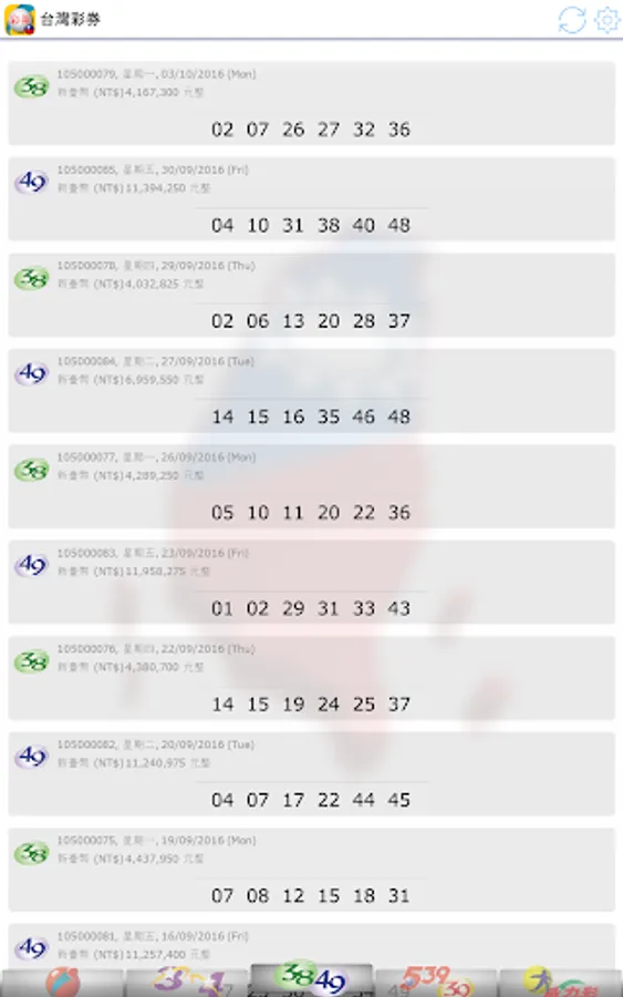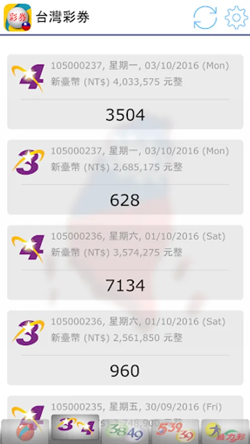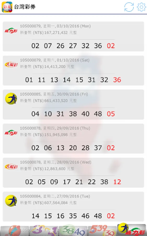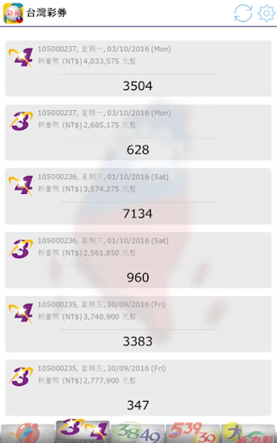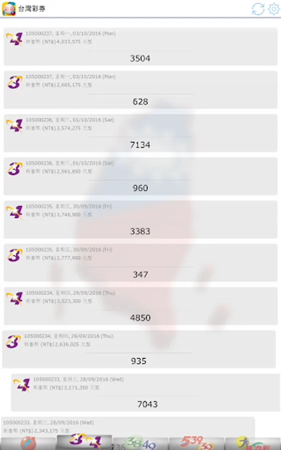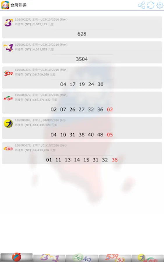 Latest 2023, view Taiwan Lottery (台灣彩券) results. Brought to you live with notifications when there are new results!