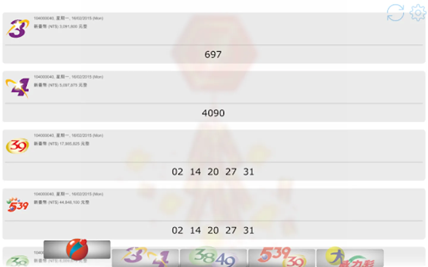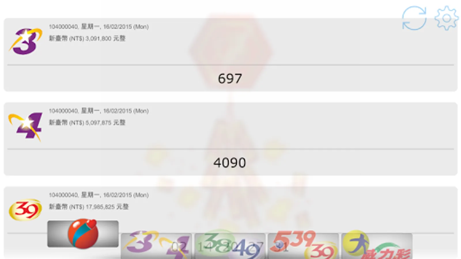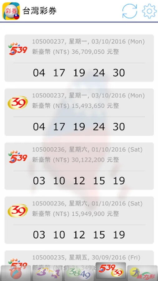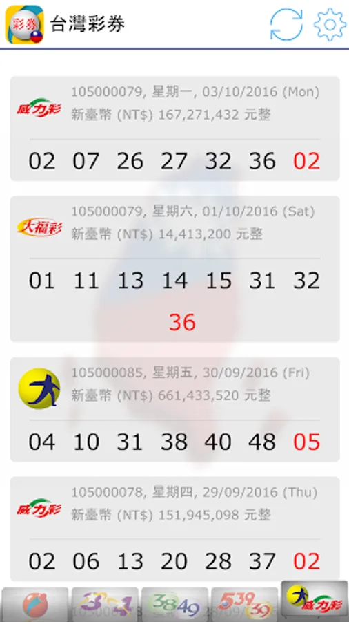 Latest 2023, view Taiwan Lottery (台灣彩券) results. Brought to you live with notifications when there are new results!