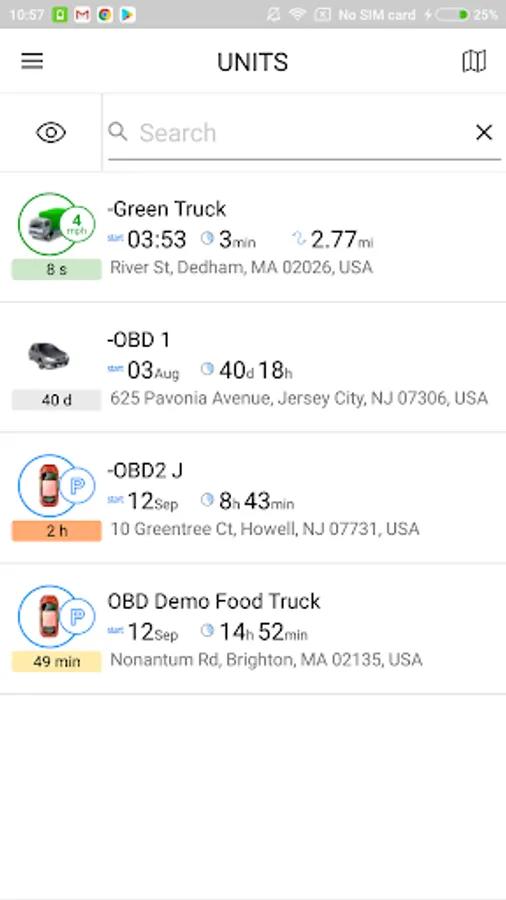 state(Moving,idle Ignition), data actuality and unit location in real time.