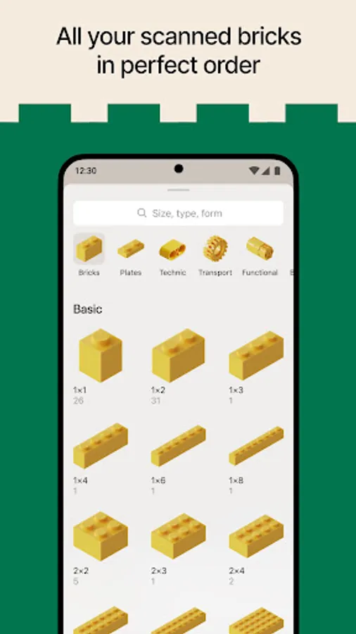 1. Spread out and scan your bricks. The app will recognize and count them.