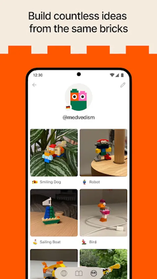 2. Get building ideas. We'll show you what to build with the bricks you have. Robots, kangaroos, х-wings, and more!
