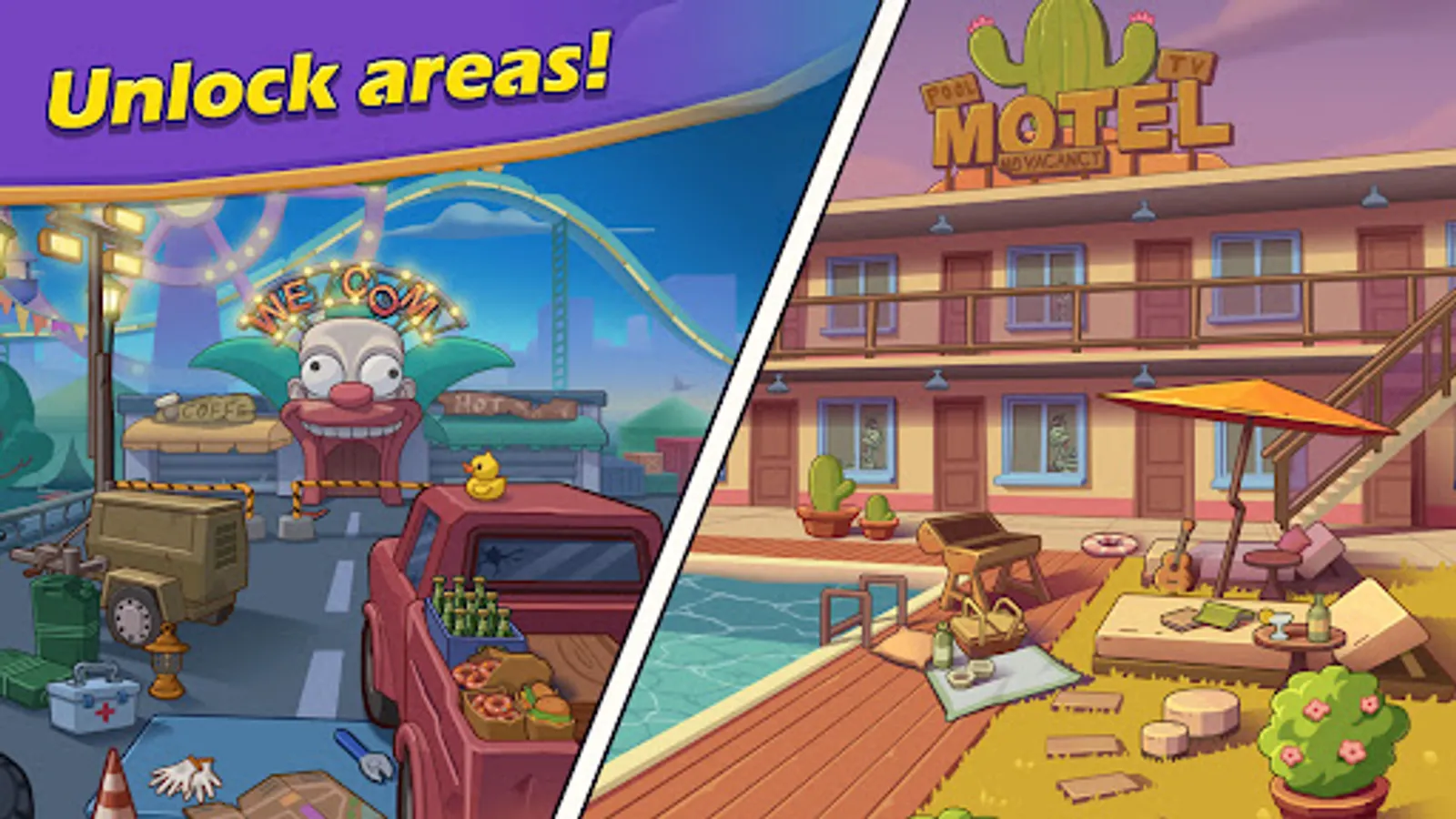 - Explore the new areas as you advance: FRONT YARD, DINER, TERRACE, and many more exciting ones for you to explore!