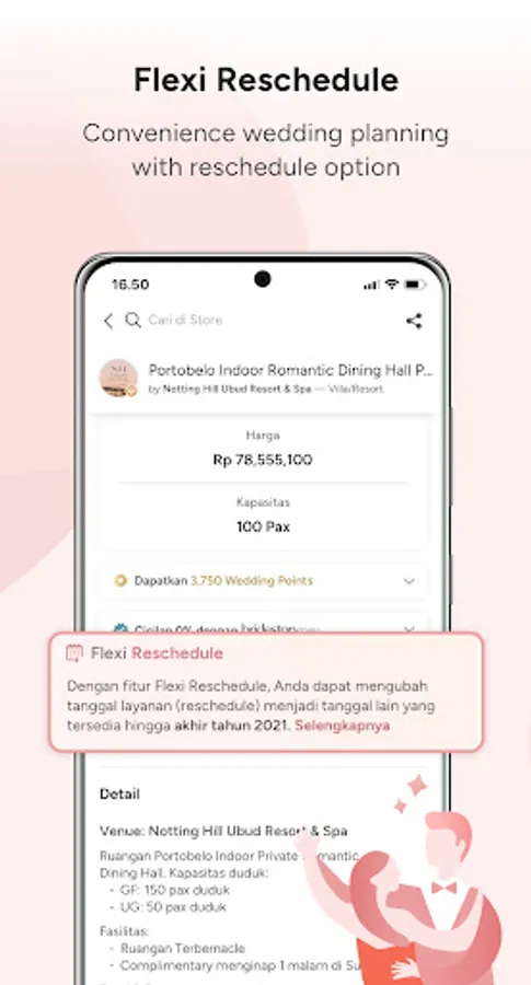 - Enjoy a more convenience wedding planning with reschedule** option