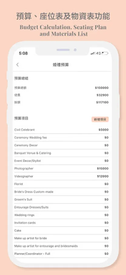 Starting from the proposal, Bride Union lists every item that needs to be prepared so that you will not miss any details. At the same time, Bride Union provides a budget table function so that you can complete the wedding without overspending.