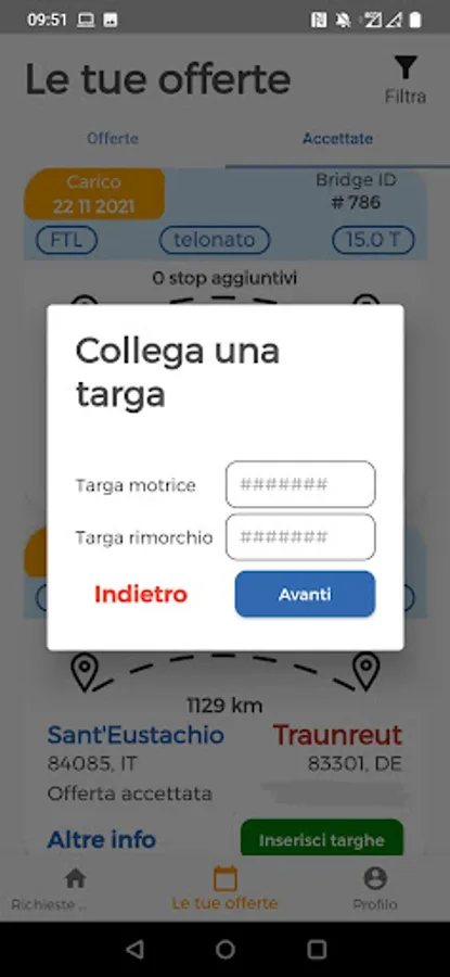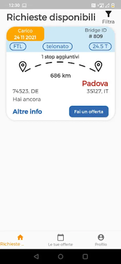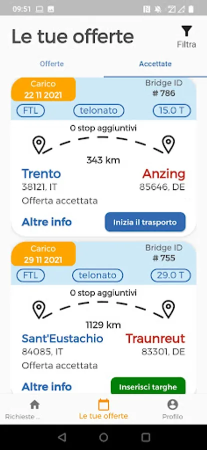 1) Fare offerte a tutte le Richieste di Trasporto disponibili in BRIDGE e piu idonee al tuo parco veicoli.