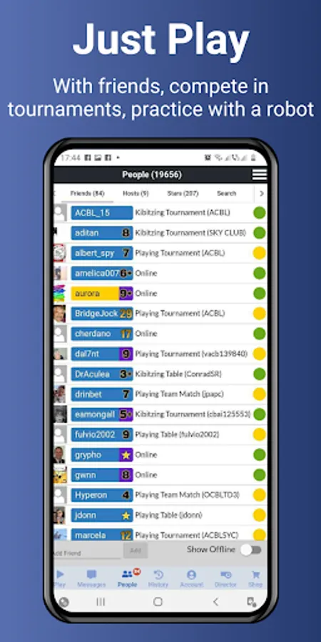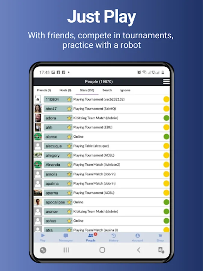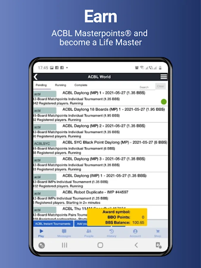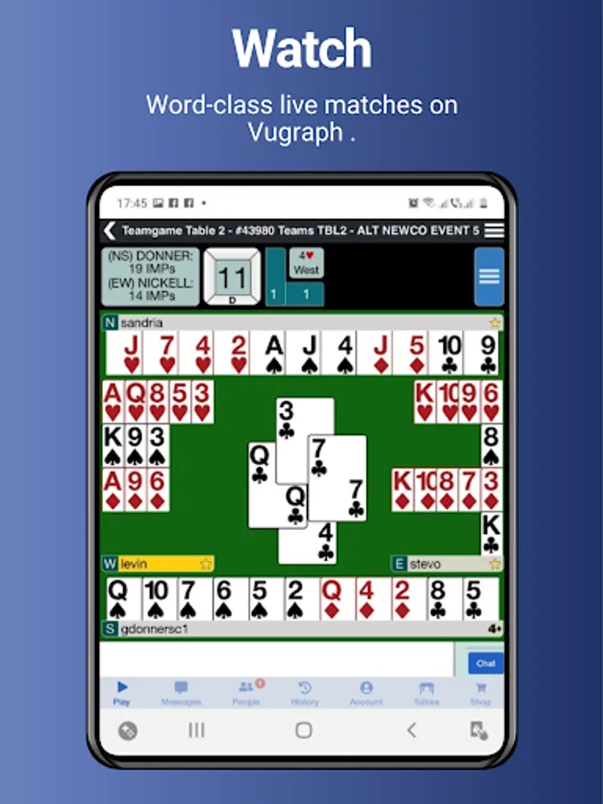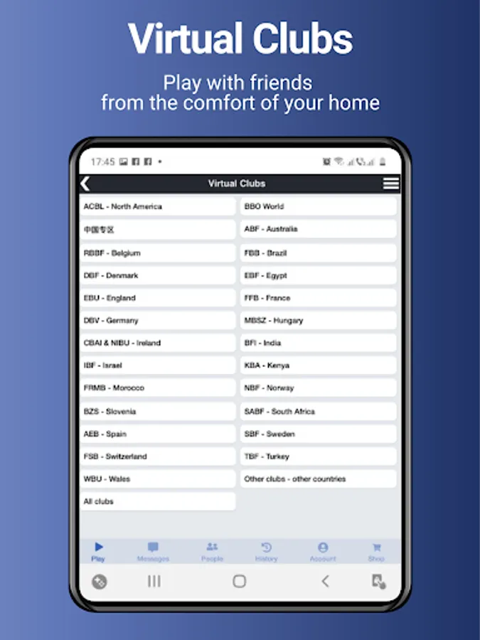 – Play in virtual club games and win national points (EBU, ABF, FFB, IBF, TBF, DBV and many more…)