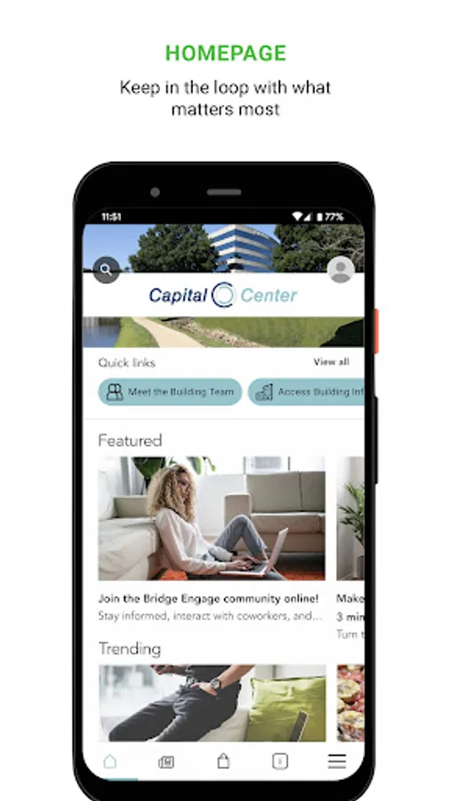 Make the most of your workday. Use the BridgeEngage App to access an unparalleled collection of services, experiences and perks curated exclusively for tenants of our buildings.