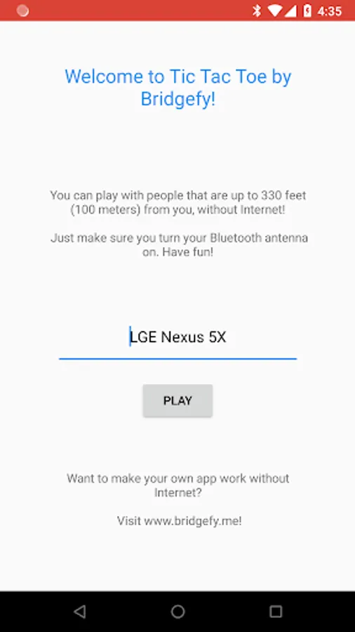 The Offline Tic-Tac-Toe app is powered by the Bridgefy SDK. Visit www.bridgefy.com and learn about other apps that work without Internet, and how you can develop your own app that doesn’t depend on Internet availability to work.