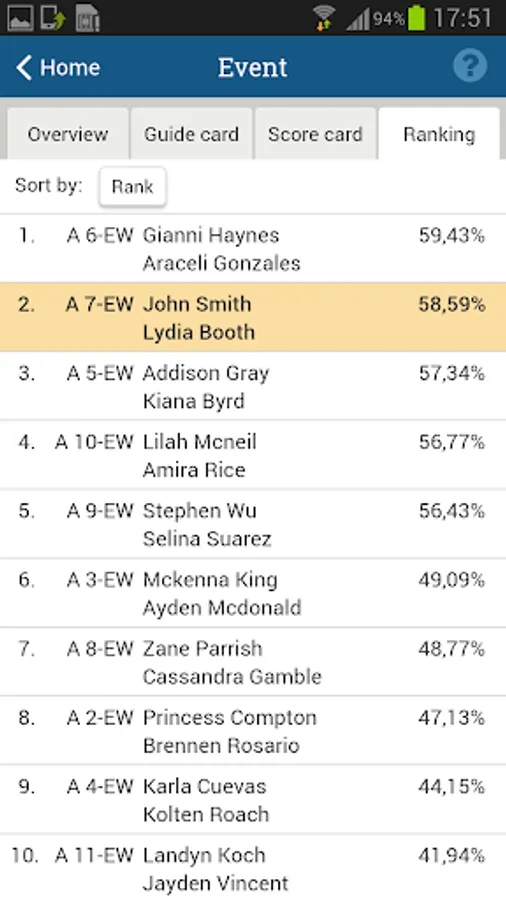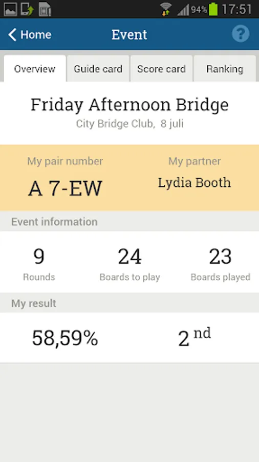 - Your personal scorecard. This is updated in real time, and the results are updated as soon as new scores come in.