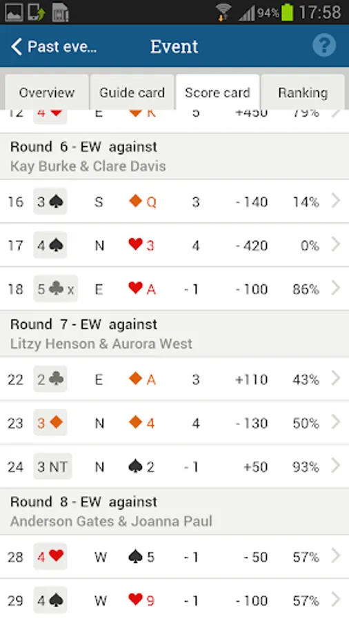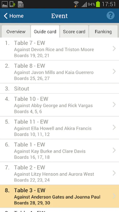 The Bridgemate app is an individual service for players who participate in bridge games that use the Bridgemate scoring system. In order to use the Bridgemate app in a bridge game, the organiser of the game (i.e. the bridge club) is required to create a club account on the Bridgemate website and upload the event data in real time via the Bridgemate Control Software. The club controls which information is visible in the app during the game. Before using this app, consult with your bridge club about whether it uploads its game data to the Bridgemate app.