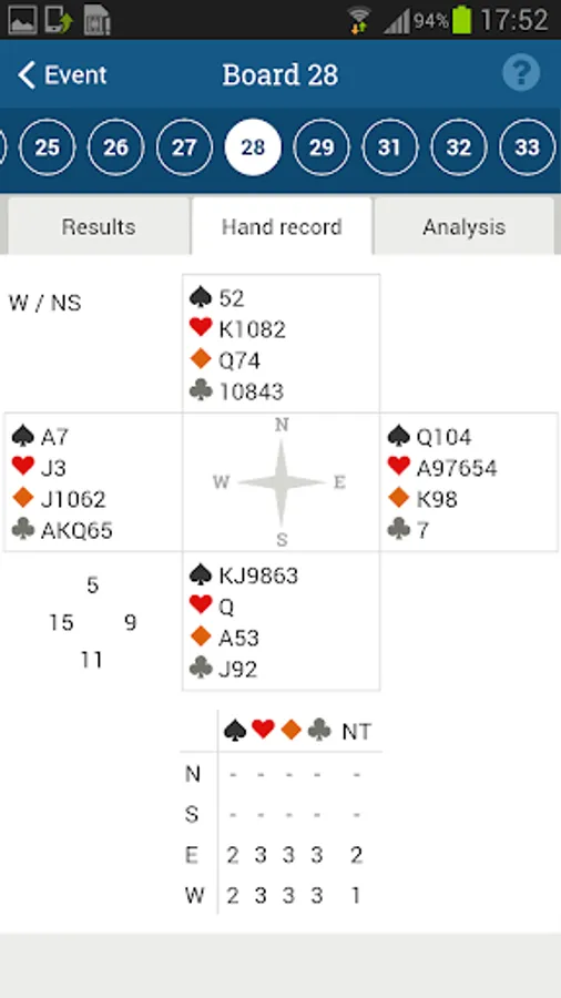- If hand records are available, they are displayed in the app along with makeable contract information.