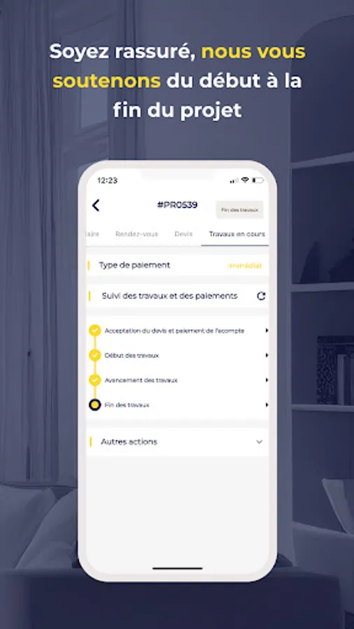 5. Vous validez l'avancement étape par étape via l'application jusqu'à l'exécution complète du projet.