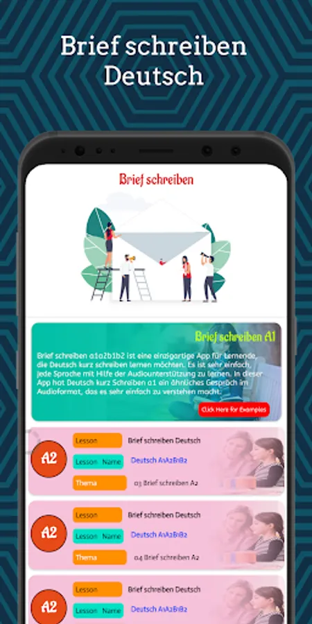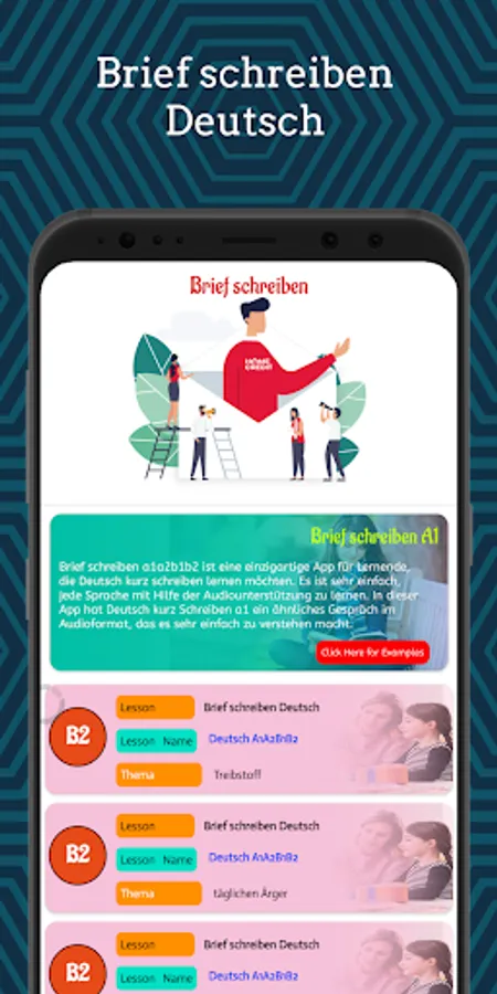 Hier finden Sie Briefe zu verschiedenen Themen und lernen, wie man Briefe schreibt. Dann werden Ihnen diese Briefe bestimmt weiterhelfen! Wenn Sie bereits Brief schreiben Deutsch A1, Brief schreiben Deutsch A2 verwendet haben, wird Ihnen diese App sehr helfen. Diese Anwendung wird Ihnen viel helfen. Hier finden Sie Deutschprüfungen für das Sprachniveau Deutsch B2. Mit diesen Musterprüfungen können Sie sich auf Ihre Deutschprüfung vorbereiten.
