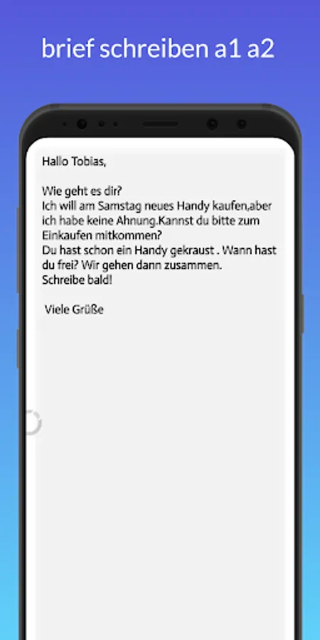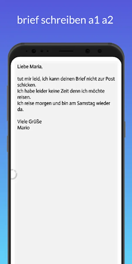 Diese App (kurz schreiben a1 a2) hat einige Artikel und Themen zu kurz schreiben a1 und kurz schreiben a2 separat. Deutsch lernen per Audio. Die Anfänger, die die deutsche Sprache mit Hilfe der Android-App lernen möchten, dann ist es die beste Wahl, um ihre deutsche Sprache zu verbessern.