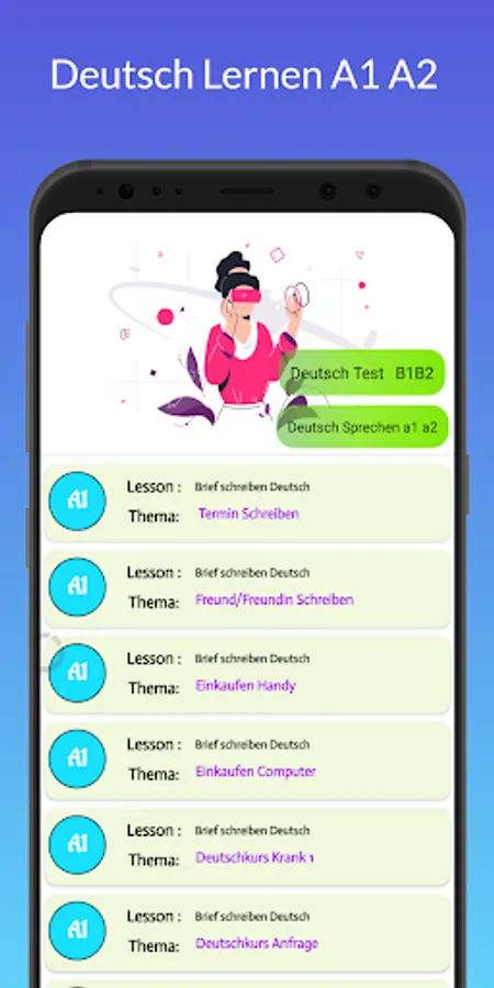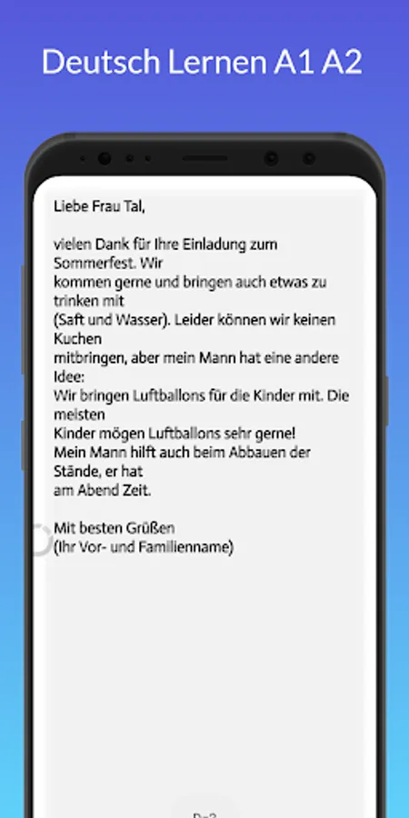 Deutsch Lernen A1 A2 ist eine sehr einfache App für Ihre Prüfung b1 in Deutsch. Mit Hilfe dieser Anwendung Deutsch Lernen b1 ist es ganz einfach, einen Brief für die A1-Prüfung zu schreiben. Alle wichtigen Themen der deutschen Grammatik werden in dieser Sprachlernanwendung behandelt. Die Easy Learn German Grammatik ist sehr wichtig, um sie täglich zu üben.