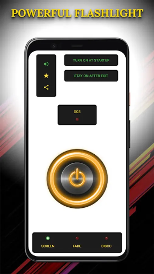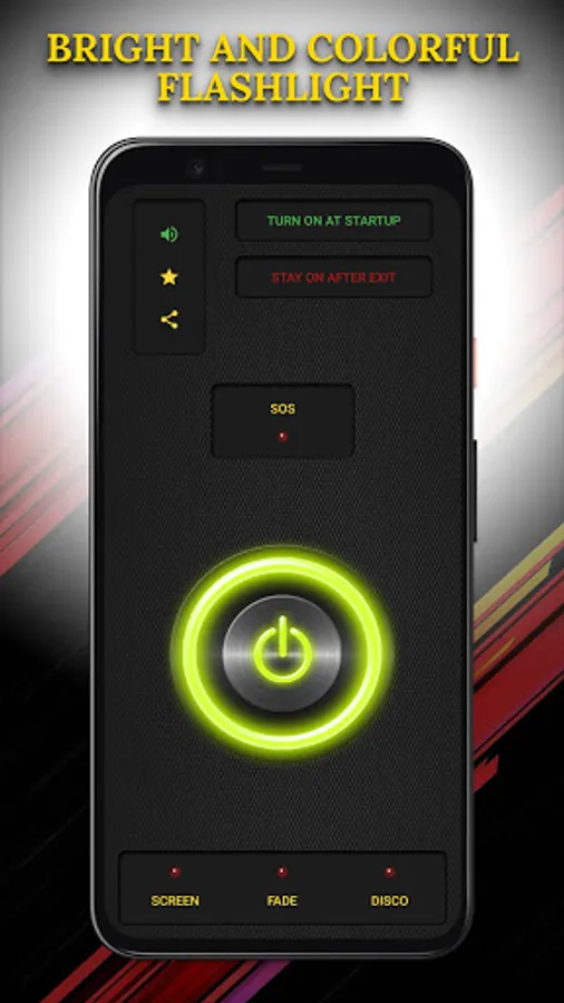 Simple and intuitive, it supports "Colorful Screen Light", "Emergency Light S.O.S" and "Disco" modes.