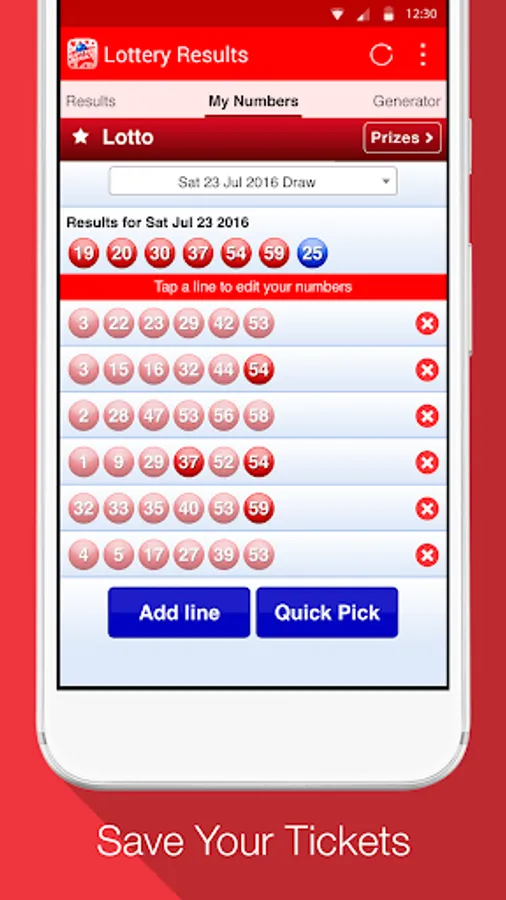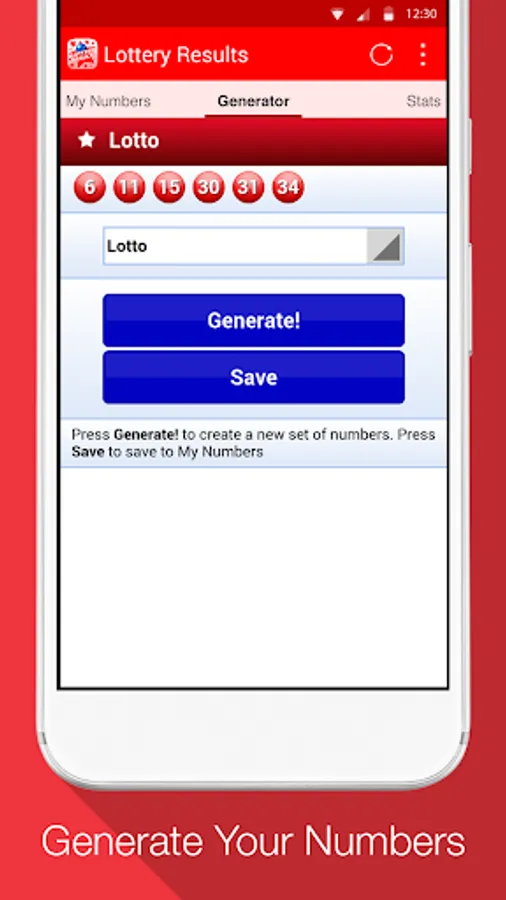 Feeling lucky? Can't decide what numbers to play? Let the app pick the numbers for you using the Number Generator and save them directly into "My Numbers".