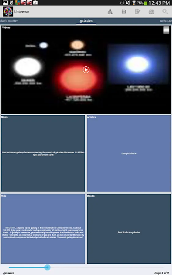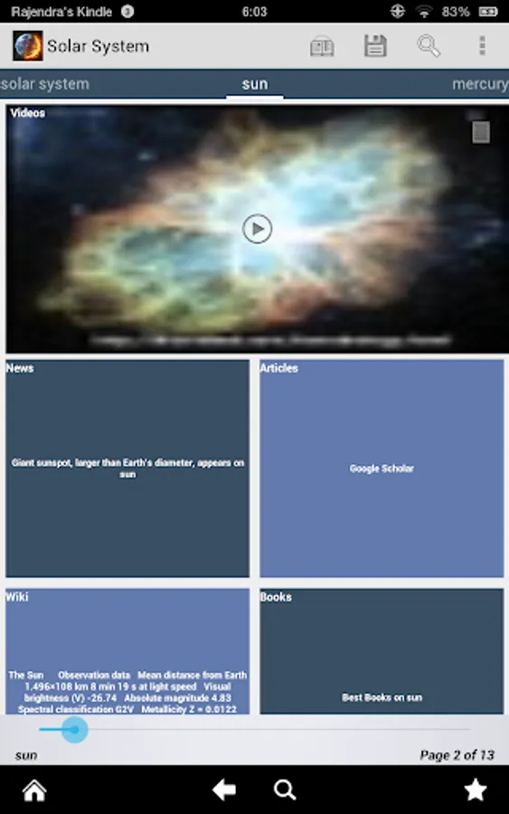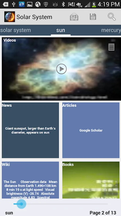 Create research papers for schools and colleges quickly. Enter the area of research and application will displays latest news, pictures, videos, scholarly reports, wiki data and related books on Astronomy