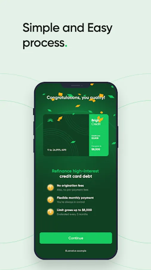 1. Refinance up to 8k*: Say goodbye to high-interest rates and overwhelming debt. Bright offers hassle-free refinancing up to $8,000*. Consolidate your debt into a single, manageable loan with great interest rates, saving you money and simplifying your finances.