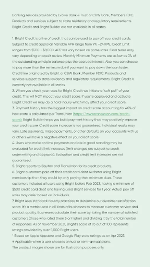 6. Quick and Easy Signup: We value your time. Signing up for Bright takes just 2 minutes*, allowing you to dive into managing your debt and building credit without any hassle.