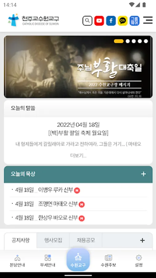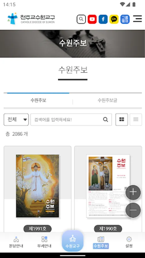 Introduction to the parish, parish priests, parishes, holy sites in the parish, Suwon Jubo, church and parish news, parish publications, materials, etc.