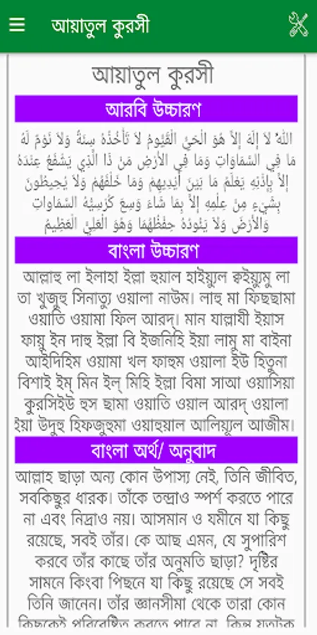Bengali Ayatul Kursi has Arabic and bengali uccharon, then finally ayat al kursi bengali meaning.