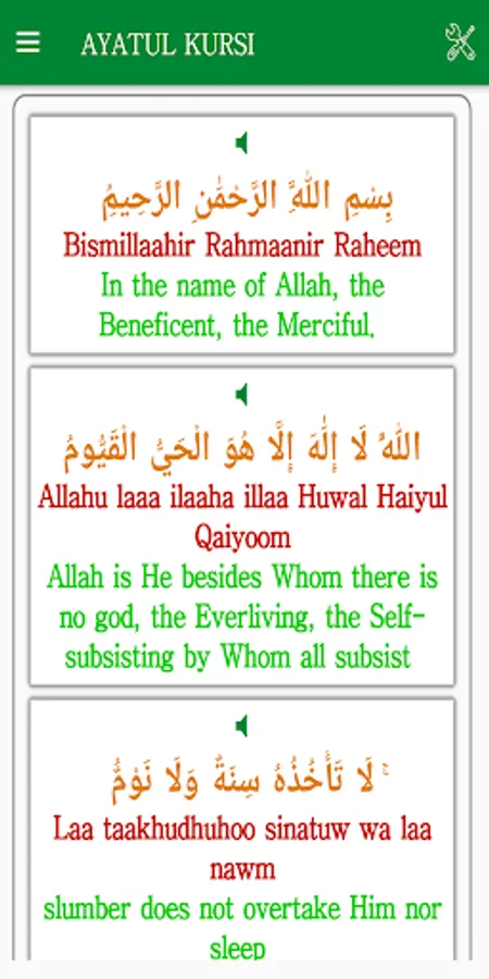 Ayatul Kursi in English app has Ayat ul Kursi mp3 audio. Ayatul Kursi audio mp3 can be played in at first.