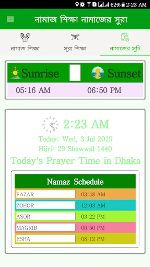 This is a great app to know "Bangla Prayer Time" . This Namajer Suchi app includes: