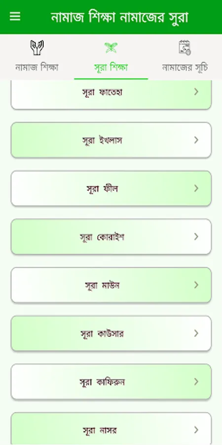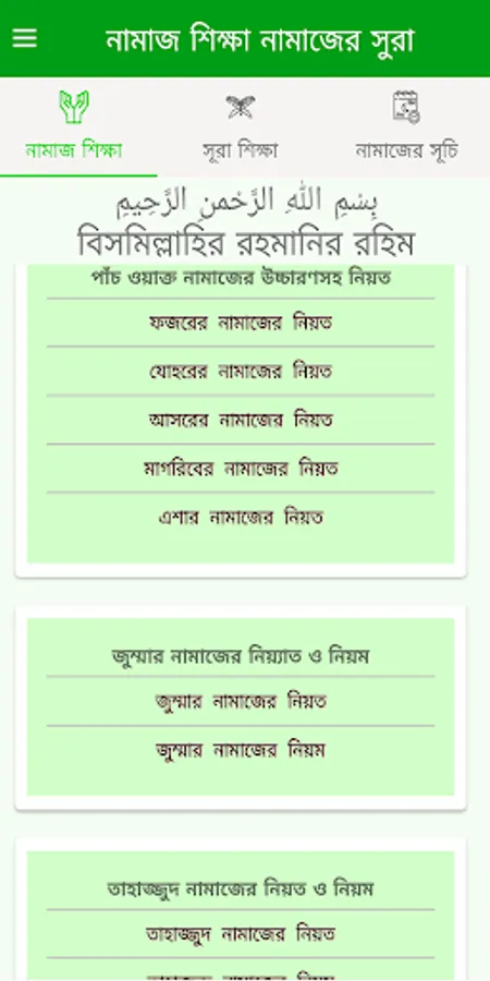 - Namajer Niom and Somoy Suchi will help you learn Namajer Surah in Bangla