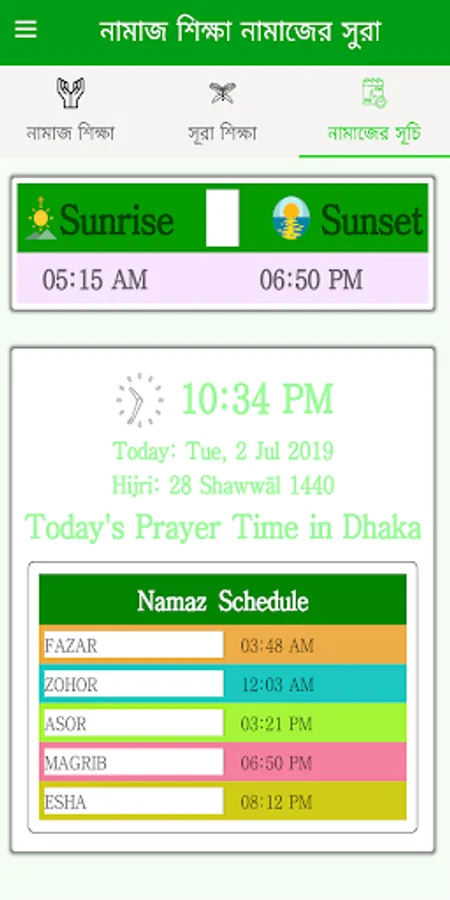 - Namajer Somoy Suchi also includes Arabic today's date time