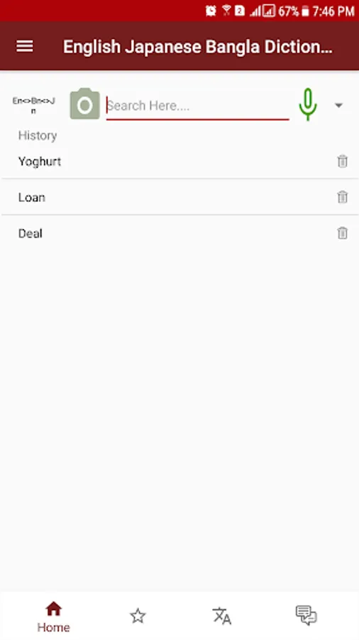 Translator: Translation works with 3 languages, English or Japanese or Bangla. It depends on the mode which mode you select for the translation like by default it’s working as English Japanese Translation offline but when you toggle the button and select Bangla then it converts to the mode of Japanese Bangla Translation offline.
