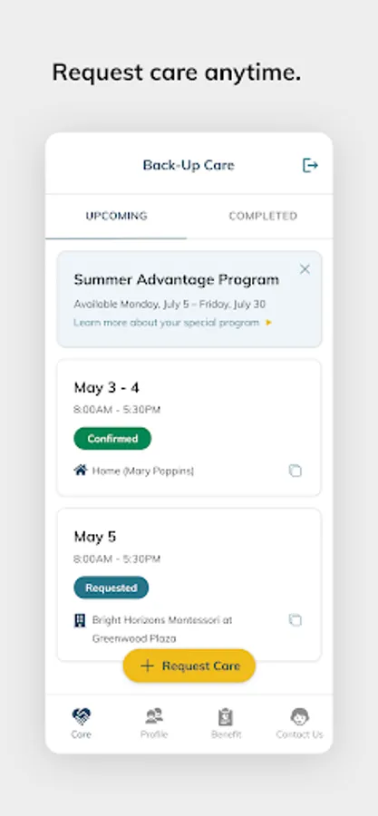 *Please note: Your employer must participate in Bright Horizons Back-Up Care in order to use this app. Not all employers who participate allow the use of this app. Please contact your human resources department for information on benefit availability.