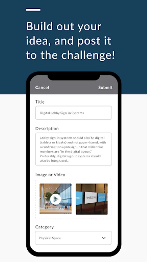 With Ideas by Brightidea, you’ll be alerted instantly when your company has a problem or topic that needs your perspective and input. Capture your ideas, insights, and inspiration, at the moment they strike, wherever you are. Include video and audio snippets, photos, and even sketches. Get inspired as you and your colleagues collaborate to build out the best ideas.