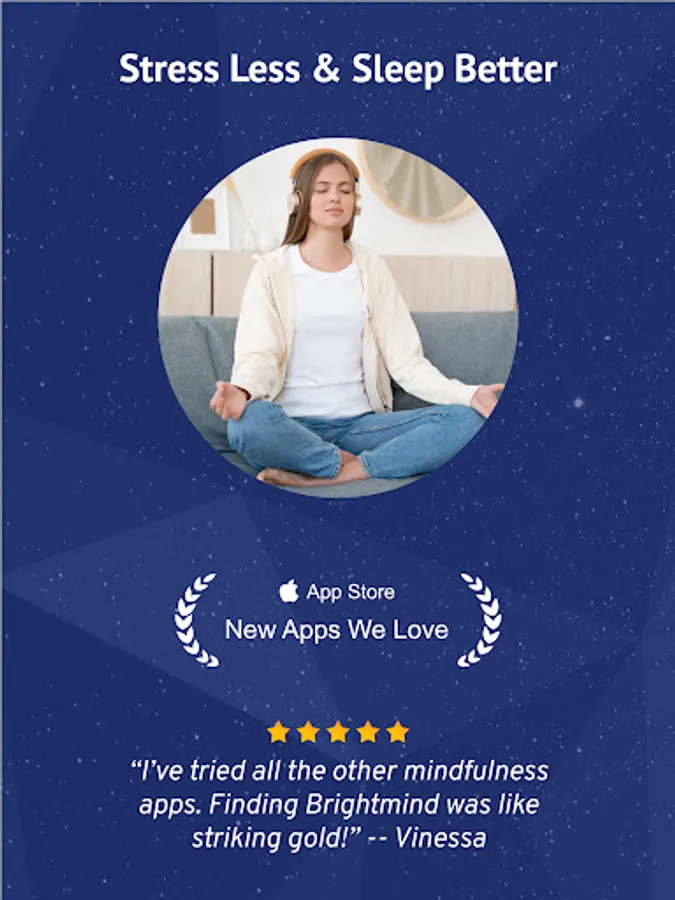 ***** “I’ve tried all the other meditation apps. Finding Brightmind was like striking gold!” — Vanessa