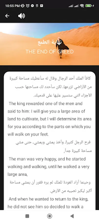 This app will help you advance your Arabic language skills by reading stories in both Arabic and English which will help you learn new vocabulary and phrases and understand grammar by reading real examples.