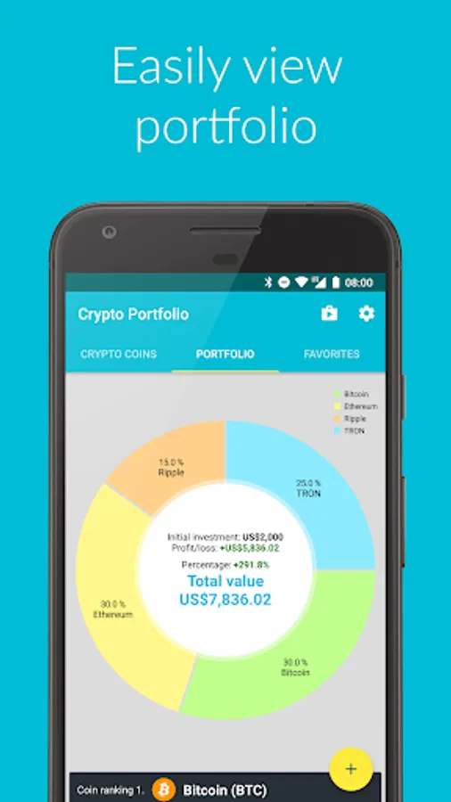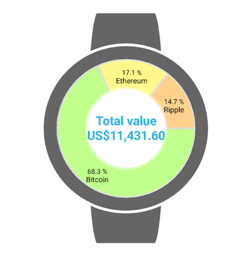 ★ Pie chart breakdown - Displays your crypto currency portfolio makeup.
