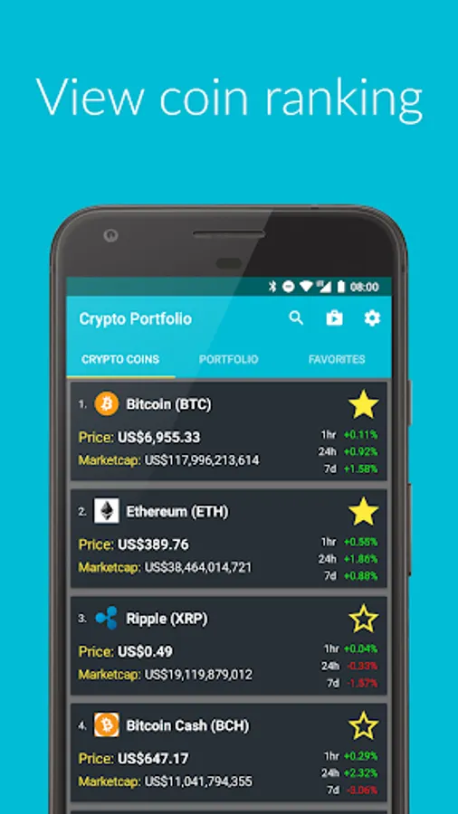 Crypto Portfolio allows you to keep an eye on any crypto currency coin ranking and also keep track of your portfolio profits & losses.