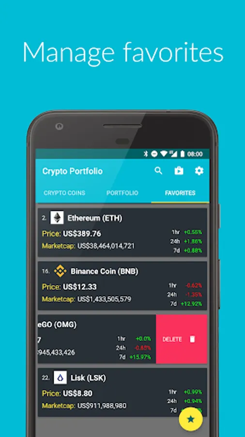 ★ Manage portfolio - Add, edit remove crypto currency coins from portfolio.
