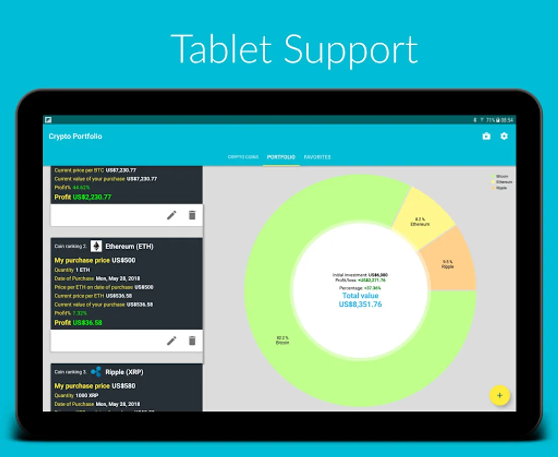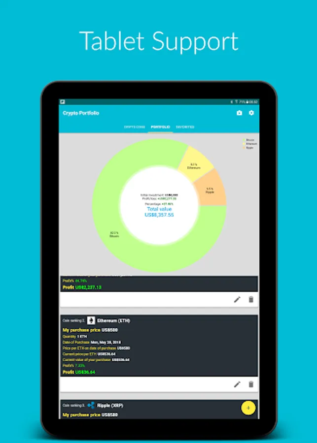 ★ View portfolio breakdown - Easily viewable breakdown of profit/loss on your crypto currency coins.