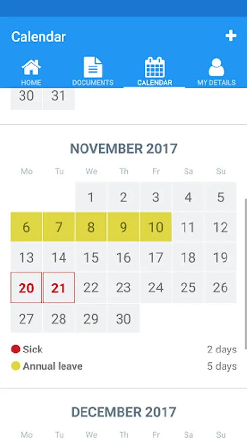 - View your payroll calendar, including annual leave, unpaid leave, sick leave and parenting leave.