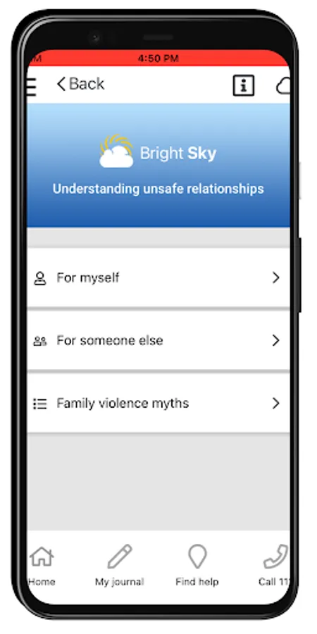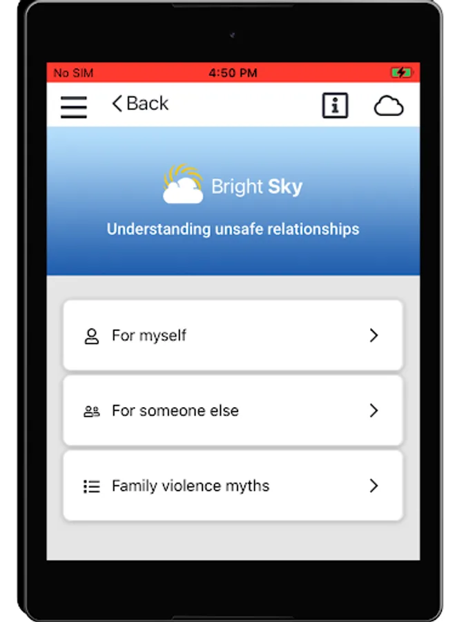 Bright Sky is a free to download and use app, providing support and information for anyone who may be in an abusive relationship or those concerned about someone they know.