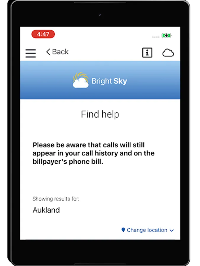 *Only download Bright Sky New Zealand onto a device which you feel safe using, and which only you have access to.