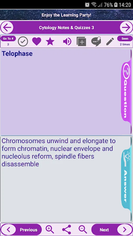 - Get back to your last study session, exactly to the last flashcard studied including the study mode.