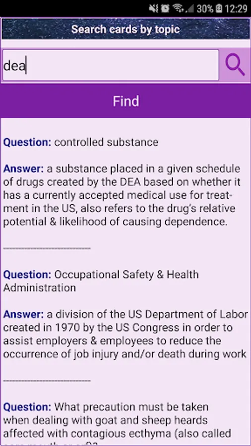 - Search and sort by topic or keyword the existing flashcards.