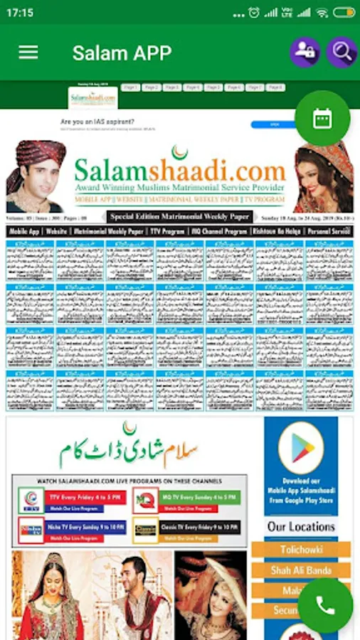 Salamshaadi providing services through Website, Weekly Matrimonial Paper and Live Matrimonial TV Programs is emerging as one of the India’s most trusted brand for matchmaking services and remarkably known for world’s most deserving matchmaking Service Provider and now started to serve people through user friendly android application.