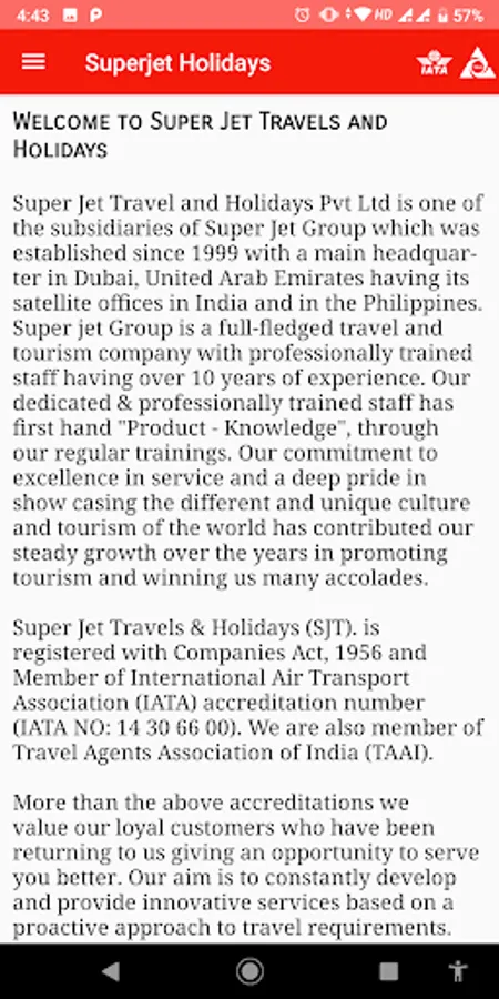 Super Jet Travels & Holidays (SJT) is registered with Companies Act 1956 and Member of IATA, TAAI.