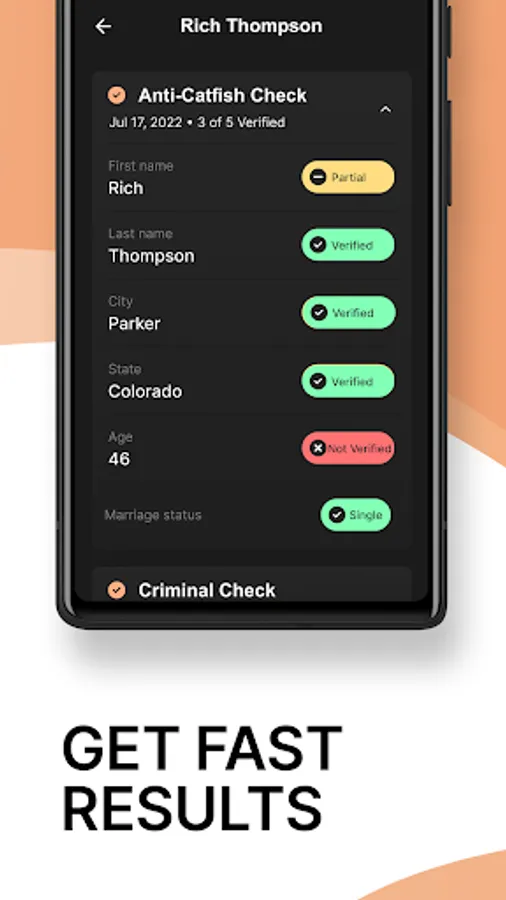 - Verify someone’s identity with ease, including their name, location, age, or marital status