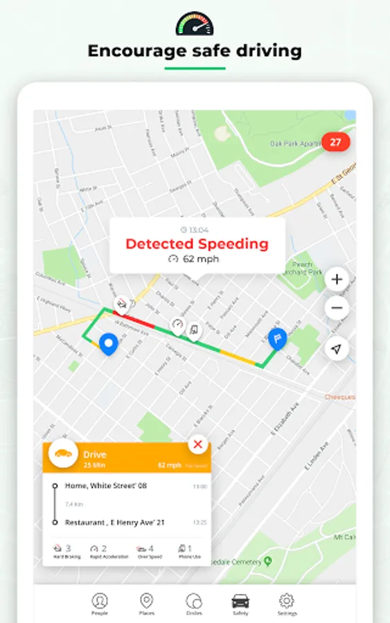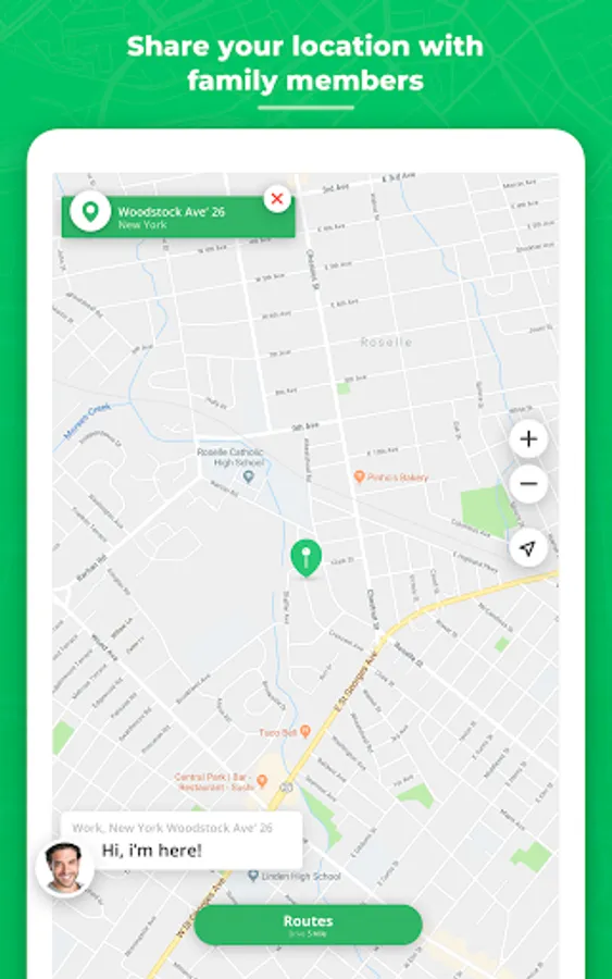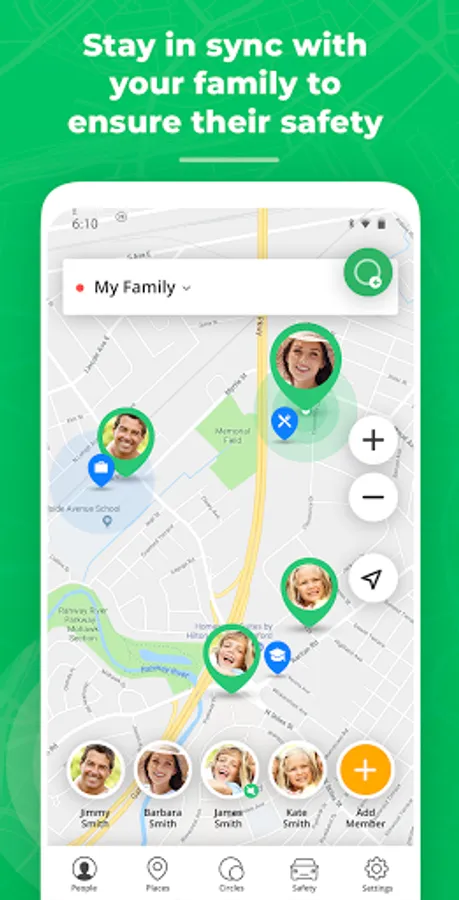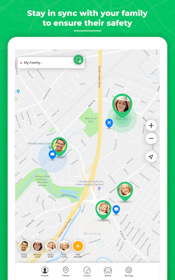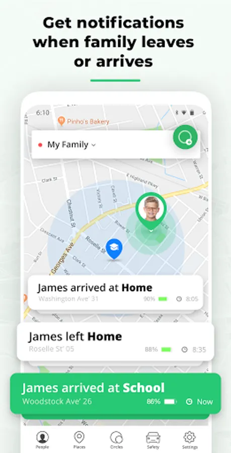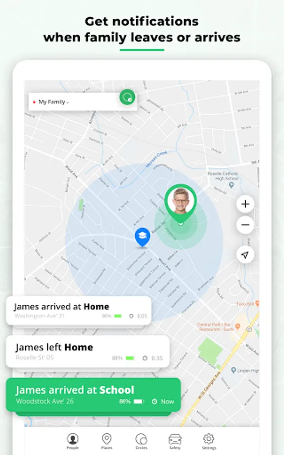 - Receive notifications when a family leaves or arrives at a place