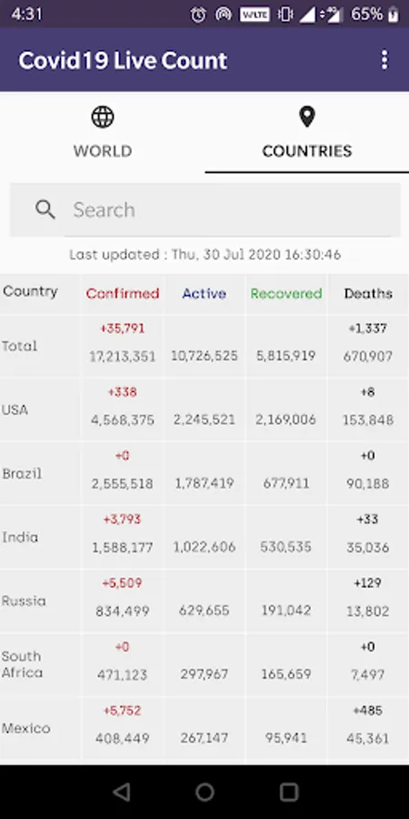 Live Count Application gives the live or current data of the people infected and recovered from the virus.